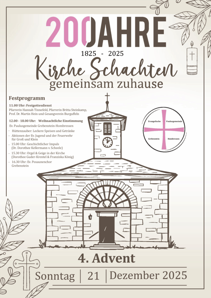 200 Jahre Kirche Schachten! Das wollen wir in der Ev. Paulusgemeinde Grebenstein-Hombressen gebührend feiern.